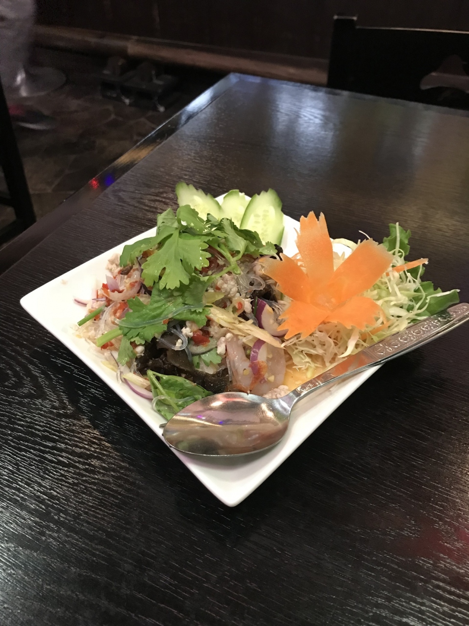 こちらのお店では、日本人に媚びない本格的なタイ料理をいただくことができ、春雨サラダも、昔タイの友人に教わった味(´∀`*)