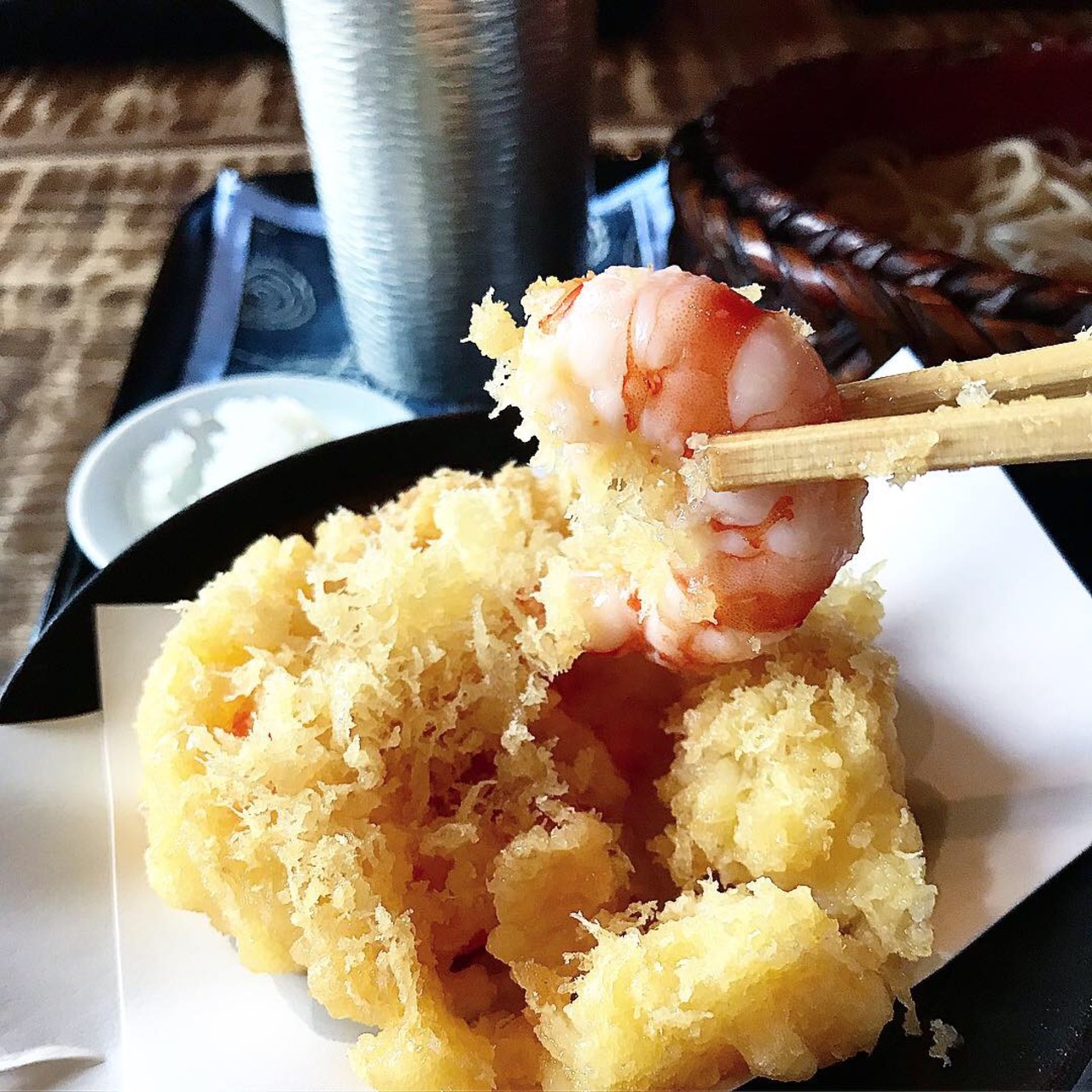 かき揚げを割るとプリップリの海老が4尾!もちろん海老も美味しいのですが、何より衣がめちゃくちゃ美味しいこと(´∀`*)