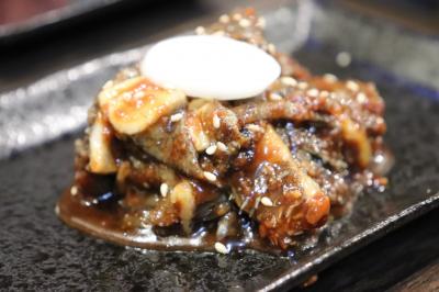 私はおろしニンニクと醤油を熱々の鉄板に乗せソース作り♪ 個人的にはこれが美味しいと思いました(^_^)是非お試しアレ!