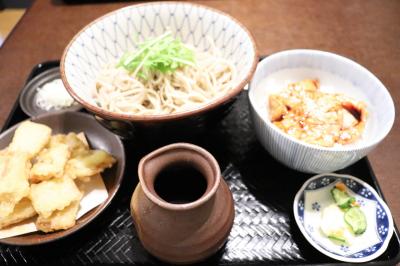 冷やし揚げなす蕎麦を注文しましたが、ざる蕎麦では無く、ぶっかけの様なスタイルで、丼の中にお蕎麦と揚げなすが入っており、自分で蕎麦つゆを入れて頂きます(^_^)