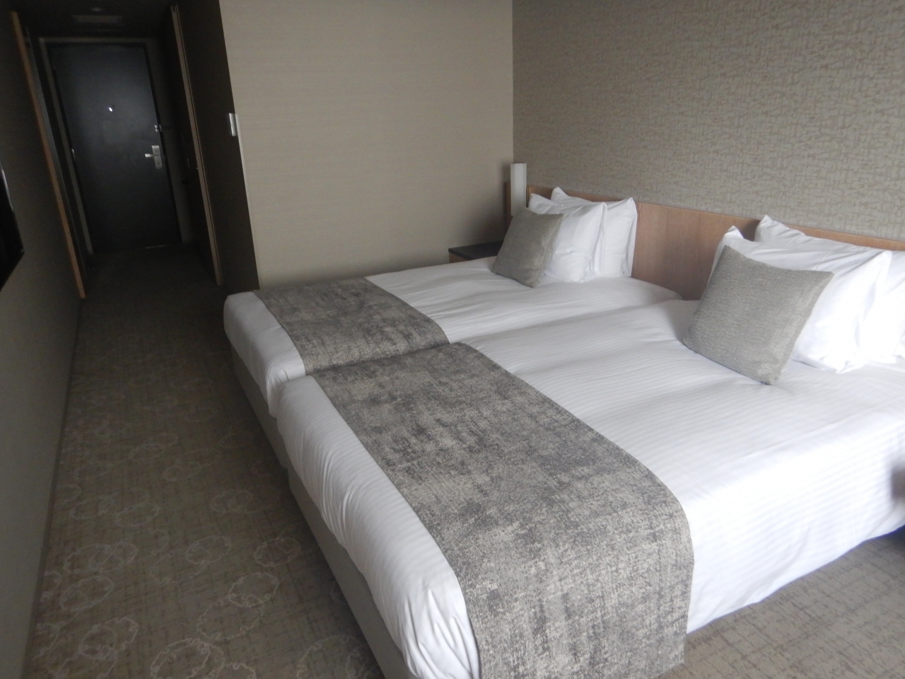 部屋は22平米と広い、14階のツインルームだった。 ただビジネスホテルとは異なり、パソコンで作業するには向いていない作りだ。
