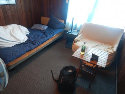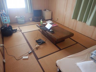 部屋は10畳の和室に通された。冷蔵庫、テレビは部屋にある。バストイレは共同。宿内は清潔。