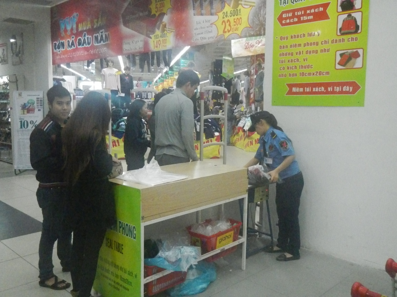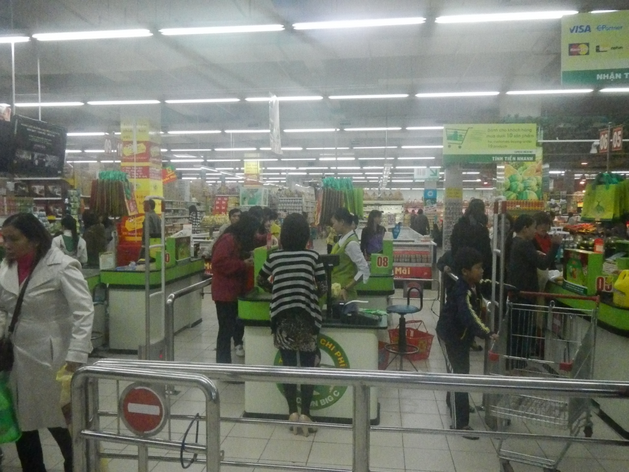 フエ最大のショッピングセンター。定価販売なので、ここで価格を確認してマーケットで買うといいだろう。1階は衣料品、携帯電話、2階はスーパーマーケット、3階は電化製品やバーゲン会場。このバーゲン会場に入る時に、バックをビニールでパッキングしたののは笑えた。万引き防止なのだろか。