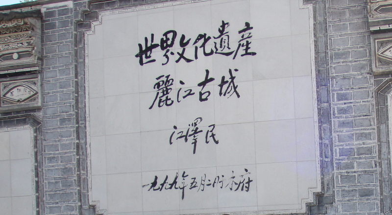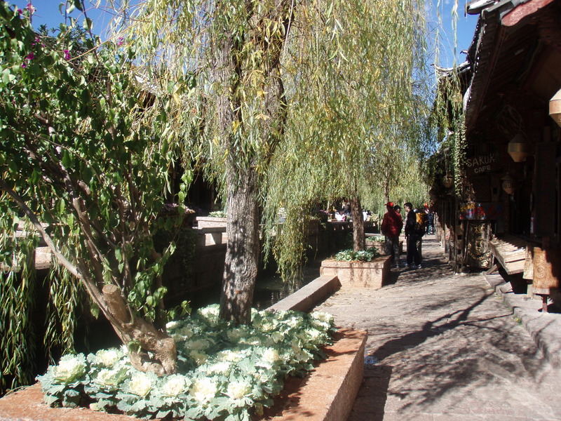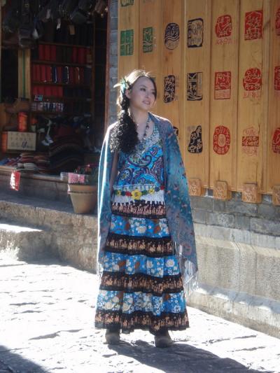 大理からバスで数時間、バスターミナルから古城まで30分ほど歩く。古城の入り口の水車のところで、宿の客引きのおばさんに捕まり、1泊60元だというので泊まることにした。古城内を歩く。中国人観光客で一杯だ。ガイドブックには「テーマパークの様」という表現があったが、まさにその通りだ。水路には水が流れ、古そうな町並みが残っている。しかし、大理に比べ物価が高く、あまり居心地がよくなかったので、4泊の予定だったが、2泊で大理に戻ってしまった。