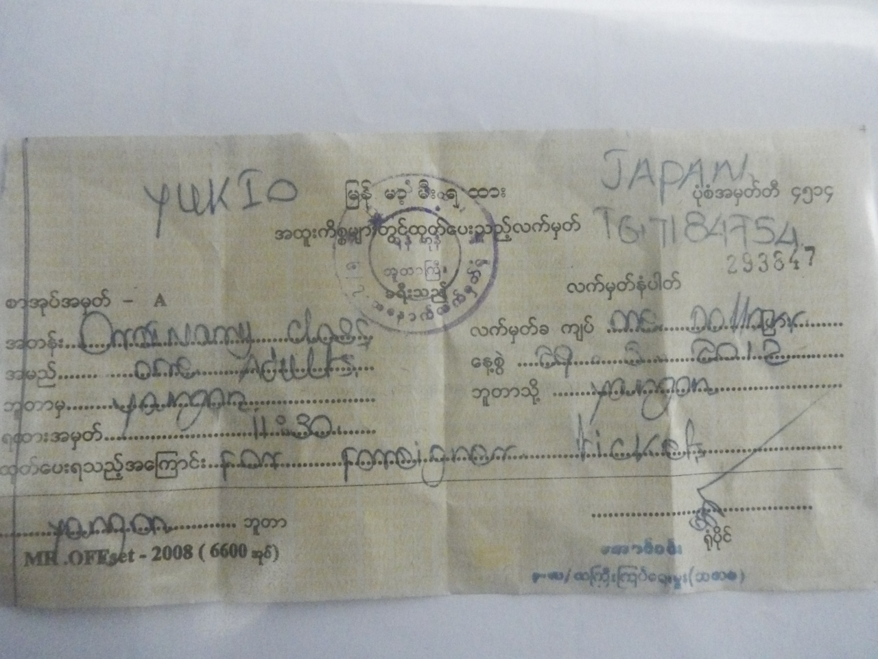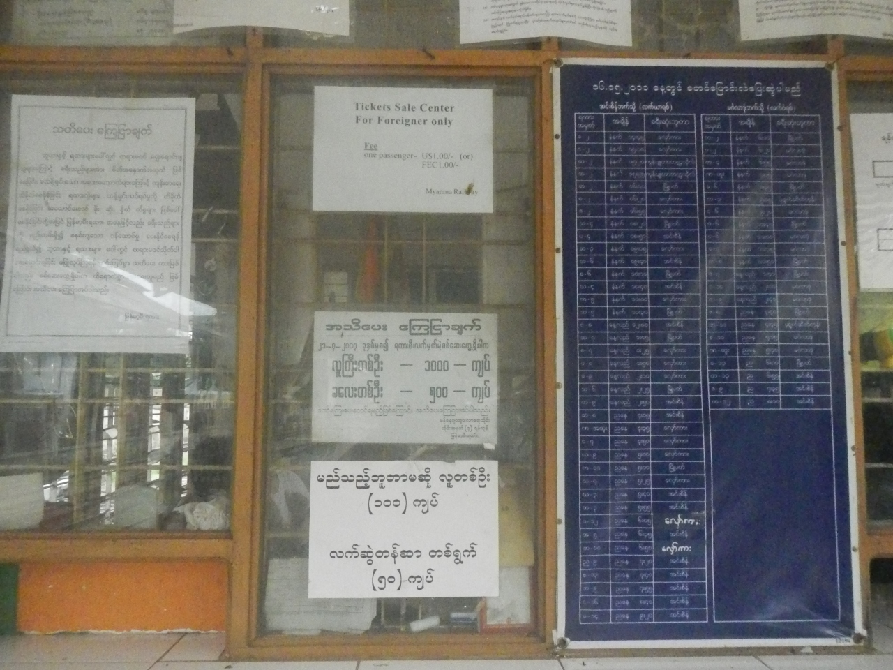 ここで両替はしたことがないので、お勧めの両替所はわからない。できればヤンゴンで両替を済ましておくべきだろう。- 旅行時期