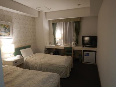 楽天トラベル経由で禁煙シングルルームを予約。3100円。朝食付き。(楽天のクーポンでさらに300円引き)ツインルームの空室があったらしく、ツインルームに無料で変更したもらえた。客室内の冷蔵庫にミネラルウォーターが入っており、無料だった。しかし、これが凍っており、飲むことができない旨、フロントに伝えると、外出中に交換しておいてくれた。