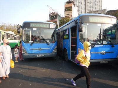 バスターミナルは工事中なので、現在はターミナルといえるほどのバス路線はないようだ。ここからはいつもの通り1番のバスでチョロンバスターミナルまで乗車した。この路線はバスの本数が多く待たずに乗れるのでよい。料金は5000ドンと変わっていなかった。