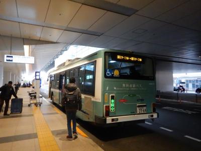 JAL70便でホーチミンから到着。入国手続きをして受託手荷物をピックアプして、税関を通り、ターミナル間の連絡バスに乗る。連絡バスは本数が多いのでさほど待たずに乗れた。乗り継ぎ便はJAL907便那覇行き、8時50分発なので、2時間近くあるから、安心して乗車した。