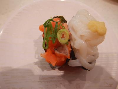 冬の白身三昧、(3貫308円)大トロ(1貫198円)と普段あまり食べない高級ネタを食べてみた。金目鯛、ヒラメ、黒ソイの3貫盛はコスパが良いと思う。本マグロの大トロはさすがに脂がしつこいくらい乗っていた。個人的には中トロくらいの脂で十分だ。他に白子軍艦、赤貝、サーモン軍艦、アオリイカ軍艦を食べてみた。