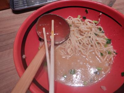 えび塩、細麺で注文した。麺は柔らかく、スープの温度は低め。食べているうちにスープの温度はどんどん下がっていく。エビの出汁は感じられるけど薄い。かっぱ寿司の一幻監修のえびそばがおいしかっただけに、本家はさらにおいしいだろうと期待していたが、期待外れ。空港店ではなく、本店ならこんなまずいラーメンに出会うことはなかったかもしれない。外国人観光客が多いから手を抜いているのだろうか。ラーメンを注文したら麺を残さずたべるのだが、産れて初めて麺を半分近くも残してしまった。