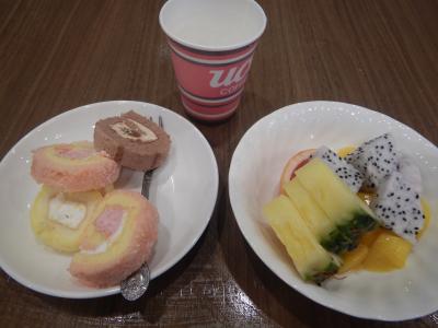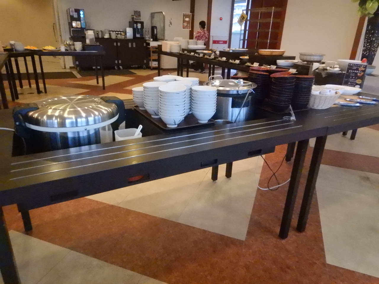 今回で4回目の宿泊。今までは素泊まりでしか利用したことがなかったが、今回は朝食付きのプランで泊まってみた。朝食は徒歩10分ほど離れたバスターミナル近くの同系列のホテルのビッフェを利用するものだった。この日は石垣発11時の飛行機で羽田へ移動する予定だったので、都合がよかった。