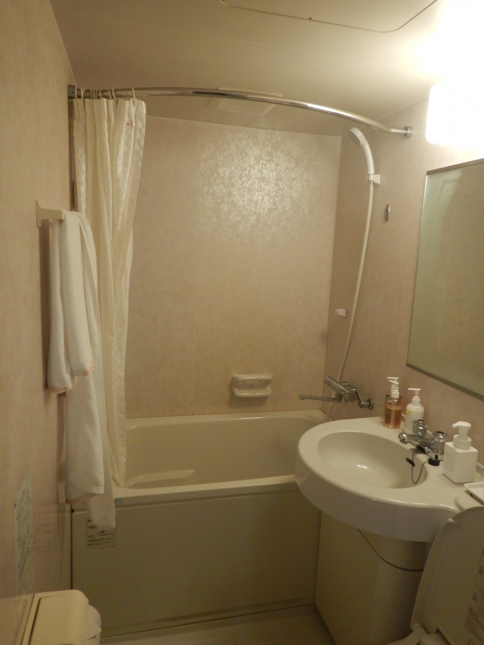 その反面,バスタブは広めでよかった。朝食込みで6000円、旅行支援で20%引き。