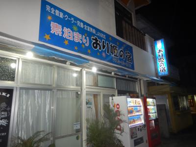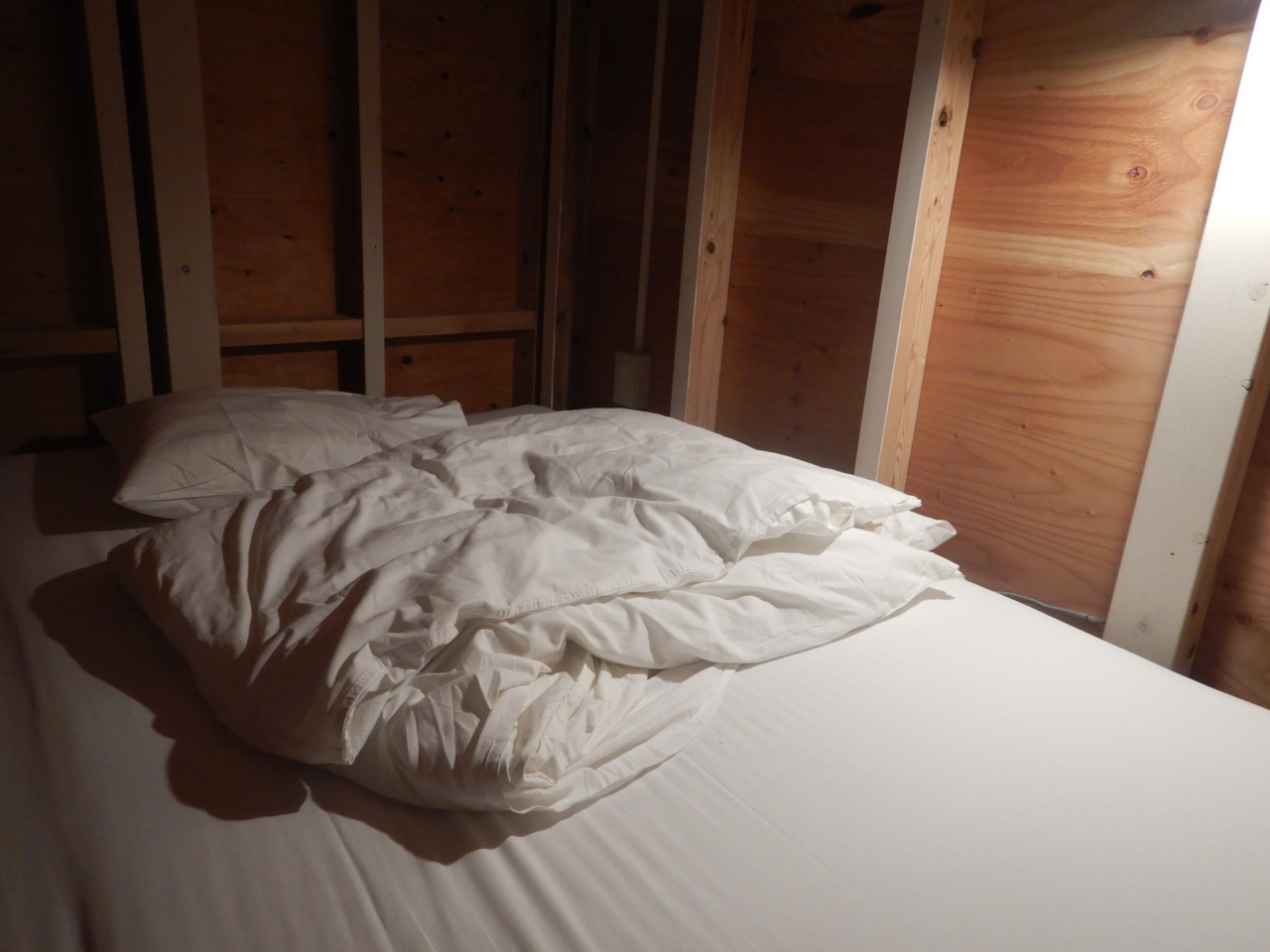 前日泊まったおり姫の宿から数十メートルしか離れていなかった。宿に入るとすぐレセプションがある。ここで宿泊の手続きをしたが、2泊した中で宿のスタッフをほとんど顔を合わせることがなかった。宿はドミトリーを個室に改造したとのことで、ゲストハウスの個室としては広い。改装工事は自分たちでしたそうで、壁や床は板を打ち付けただけのもの。ベッドも手作りだった。キッチン、冷蔵庫が使えるので自炊ができる。難点はシャワールームが狭いことだった。