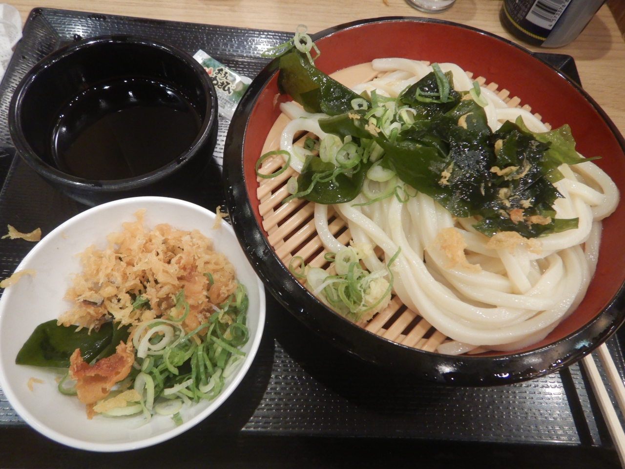 メニューを見るとどれも一般の支店よりも50円高い。それでも無料のトッピングにワカメがあるので、その分だと思うことにした。食べたのはざるうどんの並、390円。優待券を300円分使い、90円に支払いだった。- 旅行時期