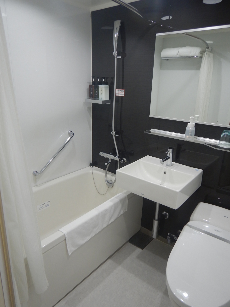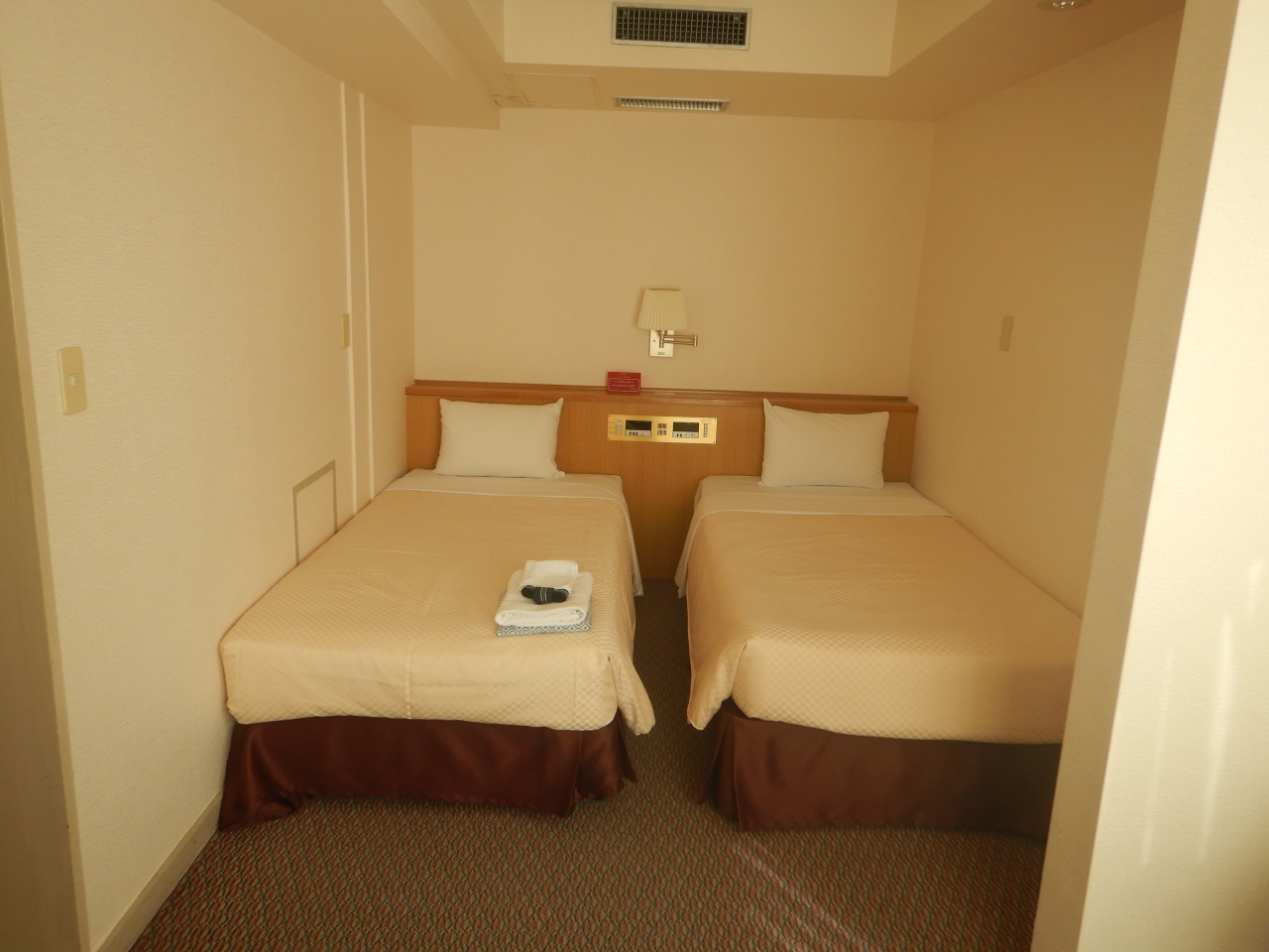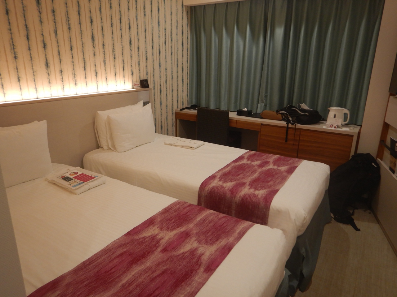 部屋はツインルーム。いつもの通りやや広め、バスタブの大きさも十分。