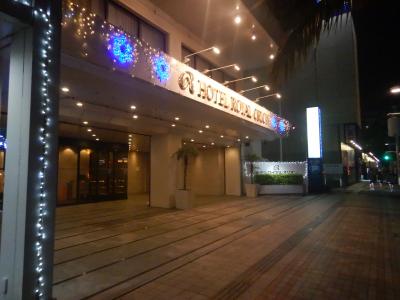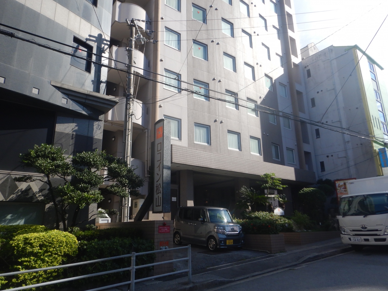 松山の名前が示す通りの繁華街の中のホテル、周囲には居酒屋やバー、クラブが多い。最寄りのゆいレールの駅は県庁前駅、徒歩10分少々かかる。国際通りにはやや遠い。