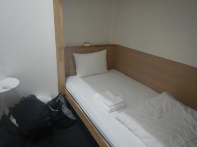 下段のベッドで1泊3000円。上段のベッドの方が少し安い。トイレ、シャワーは共用。部屋には小さな丸テーブルがあるのみ。歯ブラシ、剃刀、タオルはあったが、寝間着に類するものはない。部屋の広さは4平米程度。