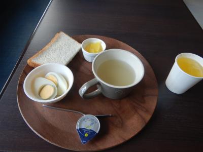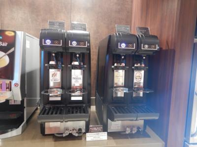 客室では飲食禁止なので2階のラウンジで飲食をする。ここはソフトドリンクが無料で飲めるし、チェックイン時刻前でも利用できた。共用の冷蔵庫はないが、保冷バックと保冷剤の貸し出しがある。