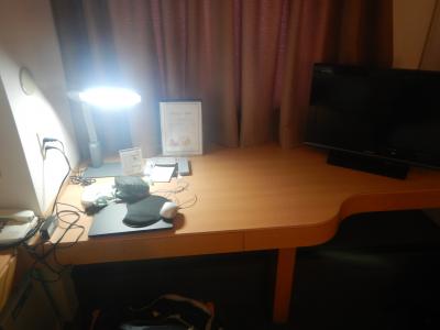 客室の広さはは10平米程度。洗面所と風呂のカランは共通。机が広くてパソコンの作業はやりやすかった。