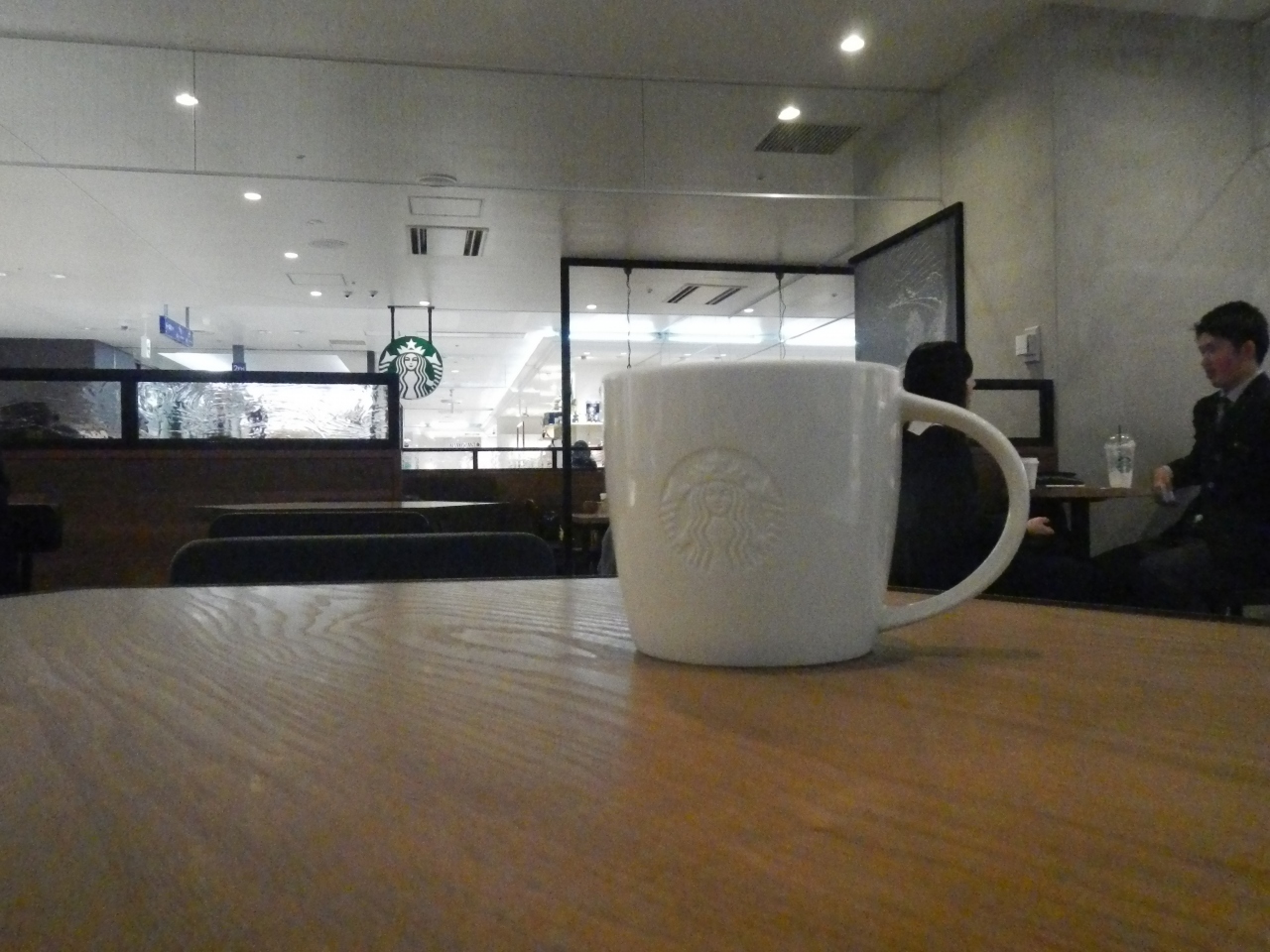 新幹線の発車まで少し時間があるので、盛岡駅ビル内のスターバックスでコーヒーを飲む。飲むにはいつもの通りドリップのホット、サイズはトール。マグカップで。スタバのコーヒーは全国どこで飲んでもまず同じ味だ。バラツキがないから安心して飲める。