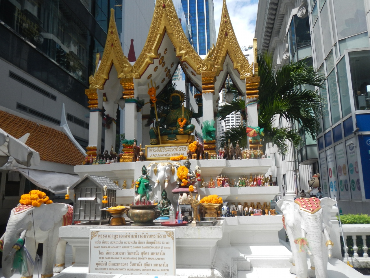 ラク・クアンというバンコクの中心となる柱が中に納められているお堂。願い事がかなうパワースポットとしてバンコク市民に信仰されているそうだ。お堂の中に入ってみると金色柱があり、大勢の人がお祈りしていた。またお堂とは別の建物でもお祈りをしている人がいた。私は旅の安全をお祈りした。