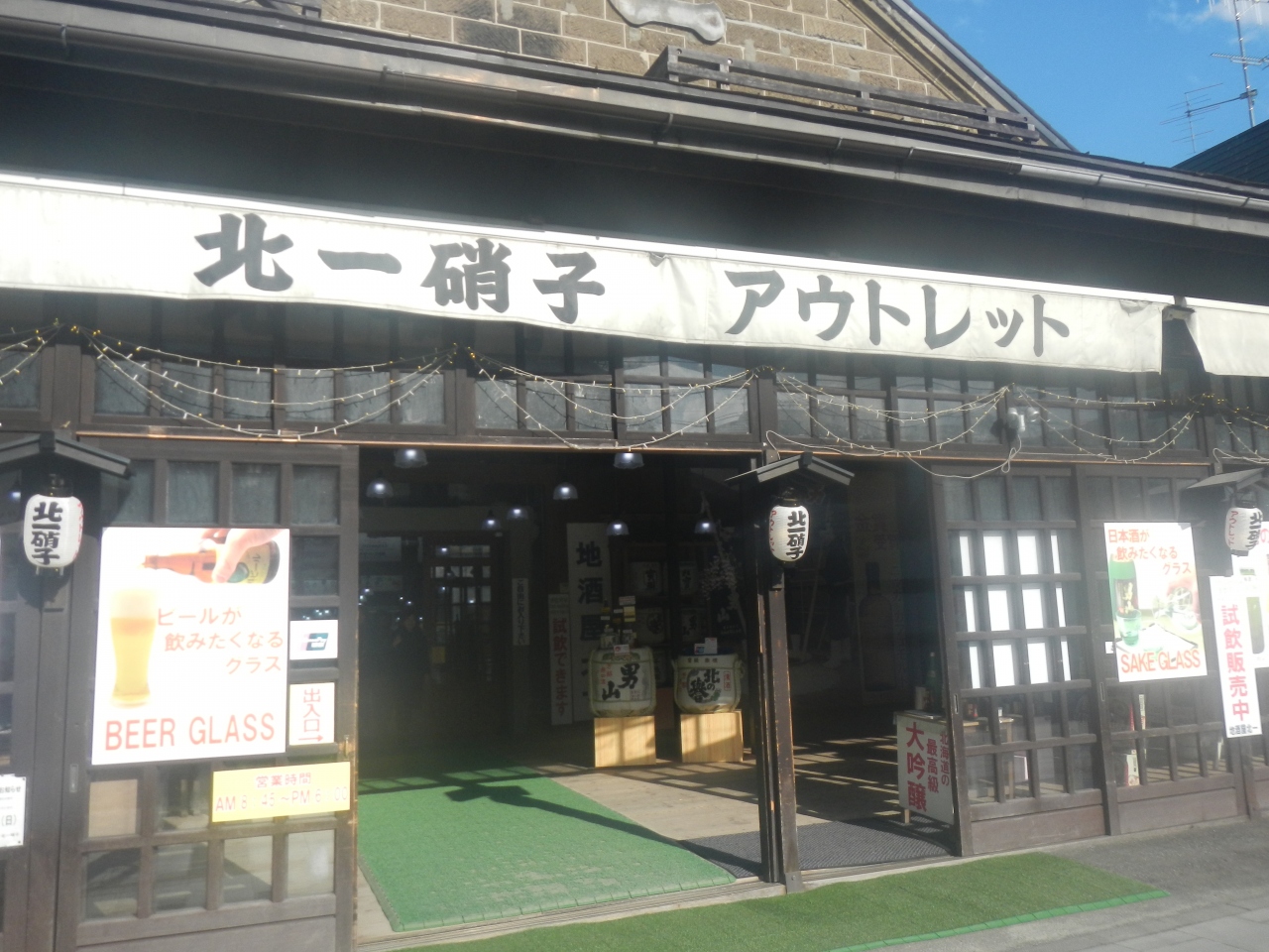 アウトレットだから北一硝子の商品が安く買えることは当たり前だが、表の「試飲販売中」の文字に連られて入ってみた。日本酒ばかりのつもりだったが、北一硝子がワインを直接輸入していることを知って驚いた。もちろんしっかりとワインの試飲をしてみた。