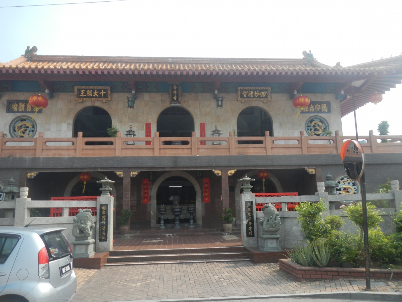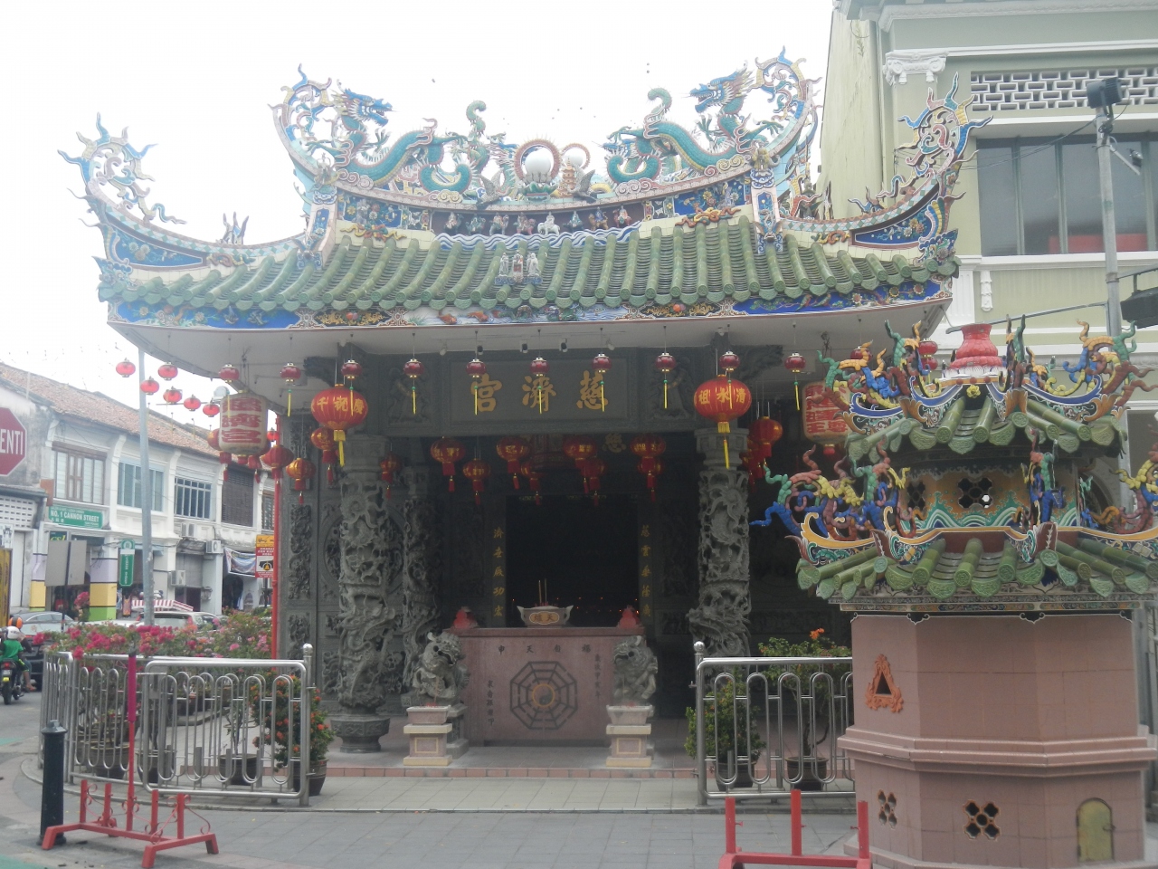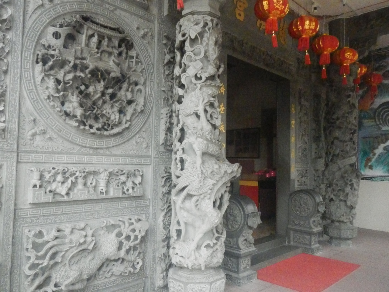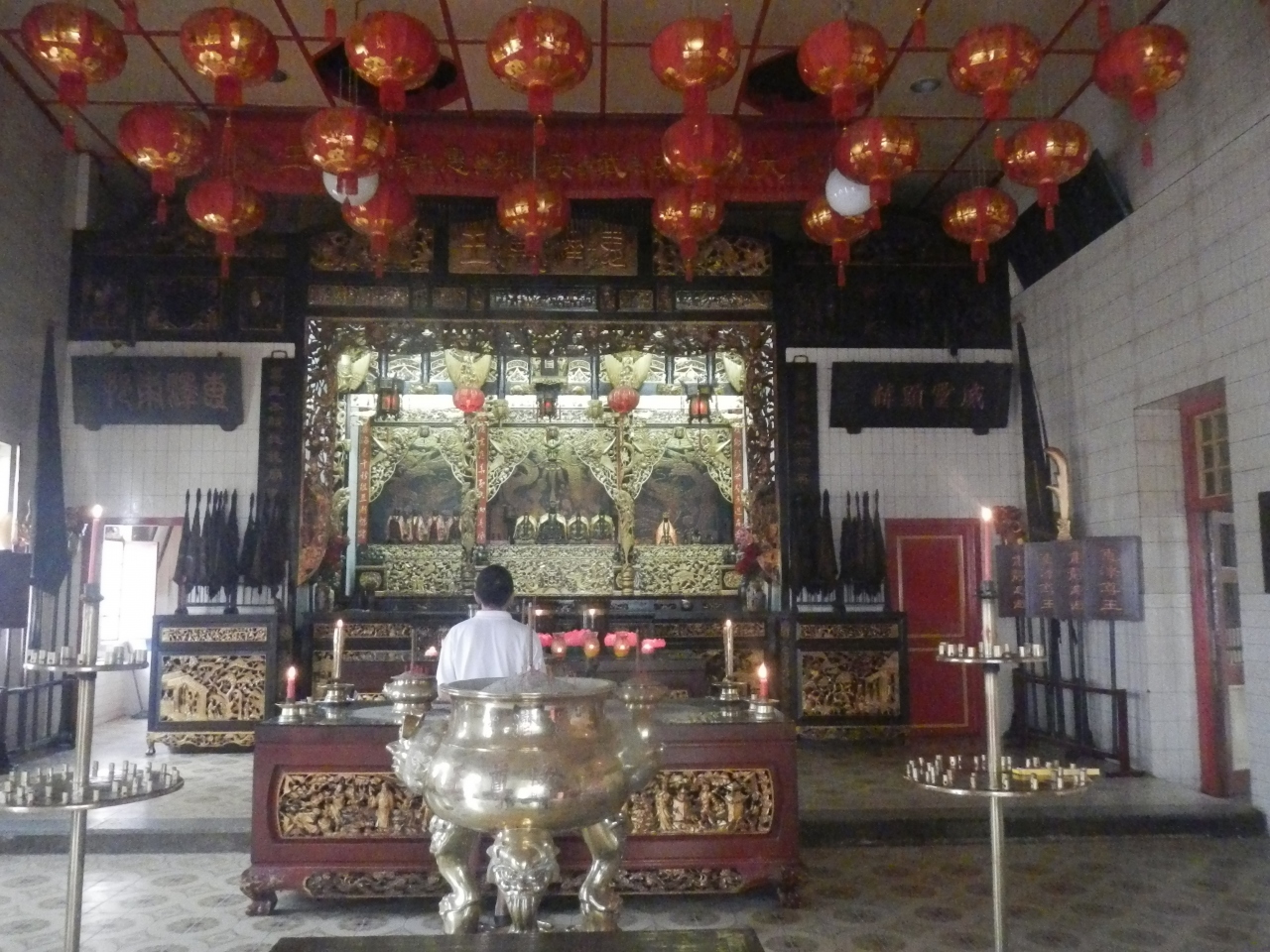 1924年に建てられた中国寺院。小ぶりな寺院だが、屋根から柱など細部まで彫刻が施されており、とても美しい。中に入ると祭壇に小さな仏像らしきものが数体並んでいた。それを拝みに来る人がいて、信仰の対象になっていることが分かる。