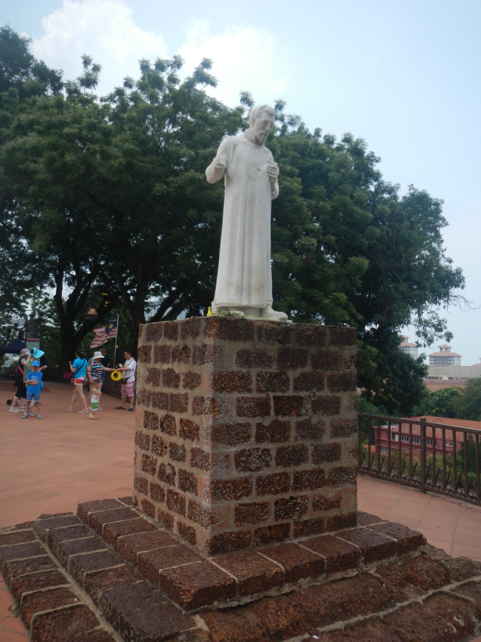 フランシスコ・ザビエルが活躍したセントポール教会跡に像が立っている。