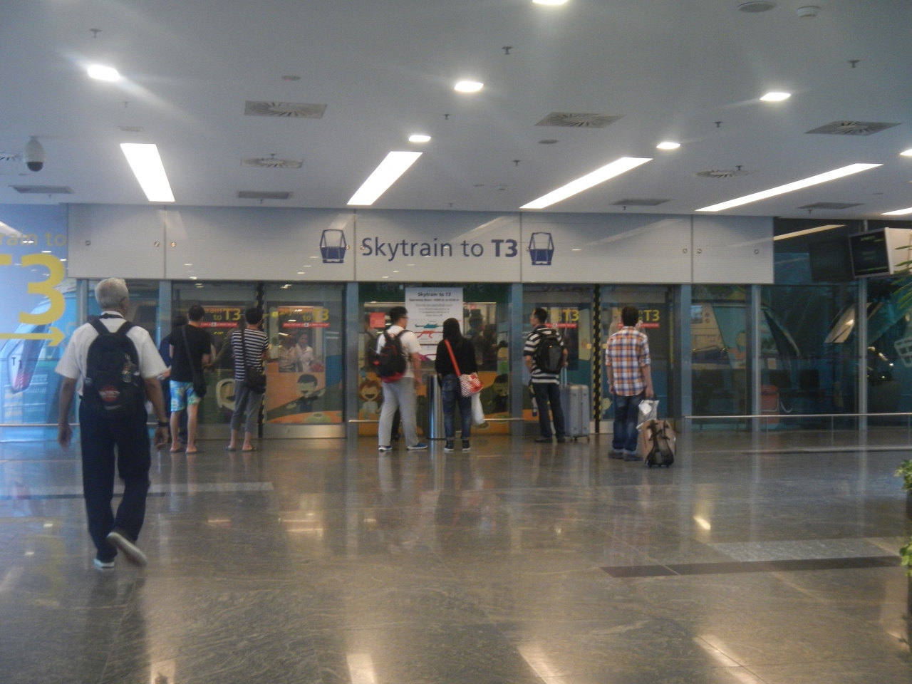 私は乗った飛行機は第1ターミナルに到着した。市内に向かうためのMRTの駅は第1ターミナルにはないので駅のある第2ターミナルまでスカイトレインで移動しなければならないので不便だ。日本の成田や羽田のようにターミナルごとに鉄道の駅があればと思う。
