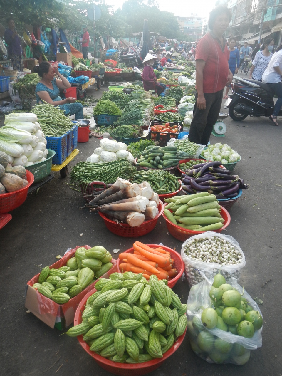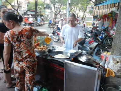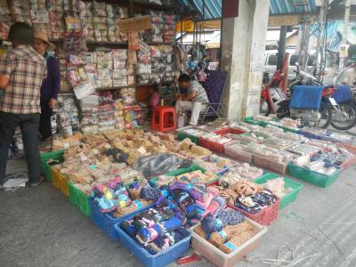 ベンタンバスターミナルから路線バスの乗ってチョロンに行ってみた。チョロンのバスターミナルまで30分ほどで着いた。バスを降りるとバスターミナル前の路上のマーケットを見て、プラカゴ屋に行く。街を歩いてビンタイ市場に寄り、チキンライスを食べて戻った。