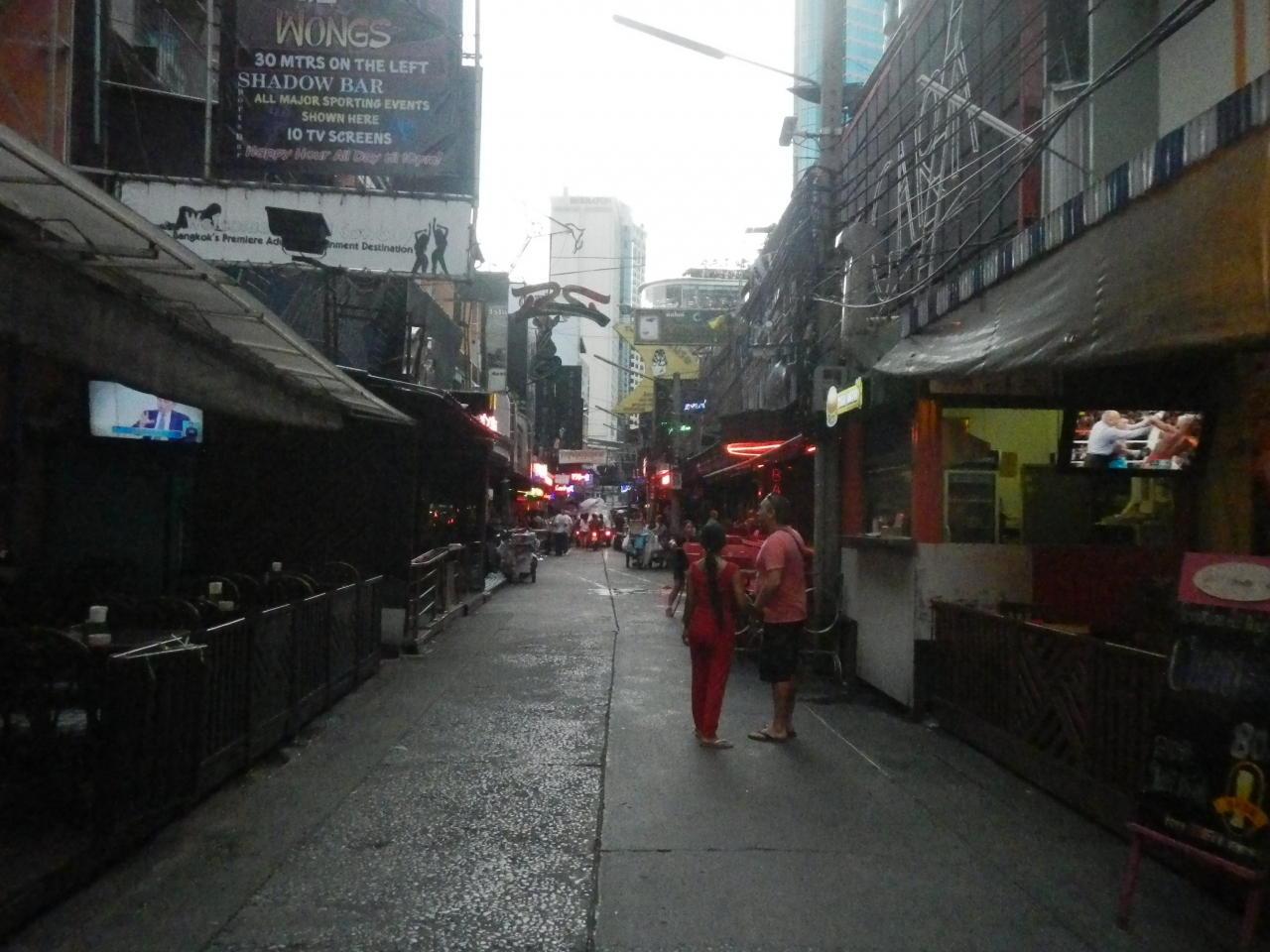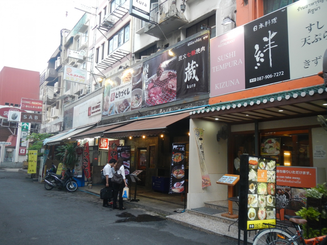 BTSトンロー駅で電車を降りる。まずはトンローの漫画喫茶「古都」に行く。次にソイ38の屋台街を見る。後はスクンビット通りに戻り、歩く。途中ビルの工事現場の目隠しのために写真や絵と展示している壁を見たり、バス停に日本の観光宣伝の写真が貼ってあるのを見る。プロンポン駅近くのスクンビットソイ33/1に入ってみると日本語の看板だらけだ。さらに、スクンビット通りに戻り、アソーク駅に手前でソイカウボーイに行ってみる。まだ開店前で閑散としていた。そしてアソーク通りからスクンビット通りとの交差点に出ればゴールだ。