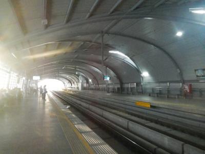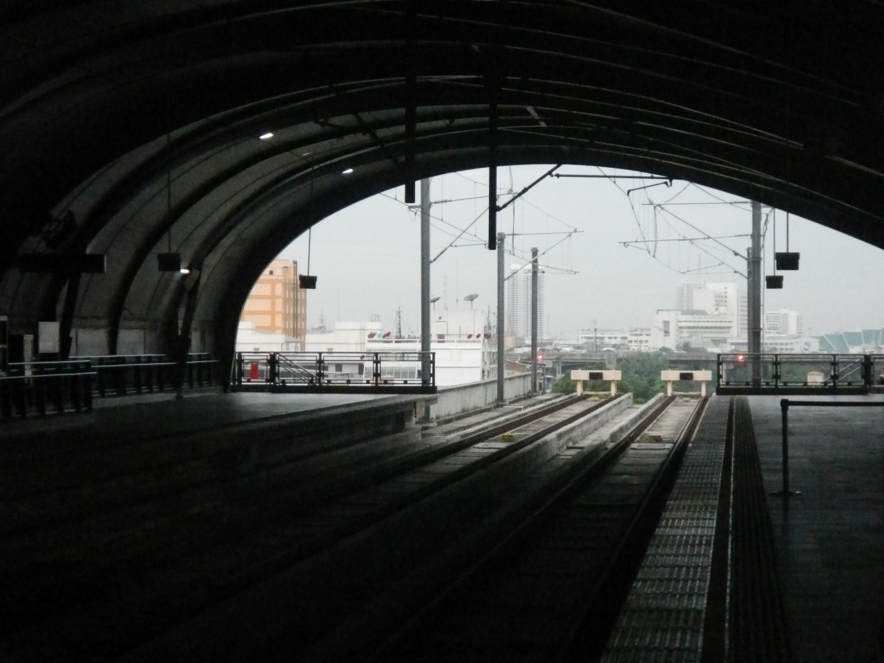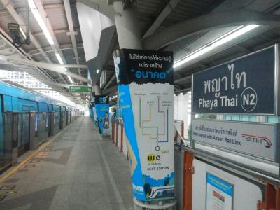 BTSパヤタイ駅を降りて通路を歩き、エスカレーターで昇って行くとホームがある。ホームはカマボコ型のドームで覆われており、雨の心配はない。空港方面の反対側を見るとレールが途切れており、ここが終点であることがよくわかる。- 旅行時期