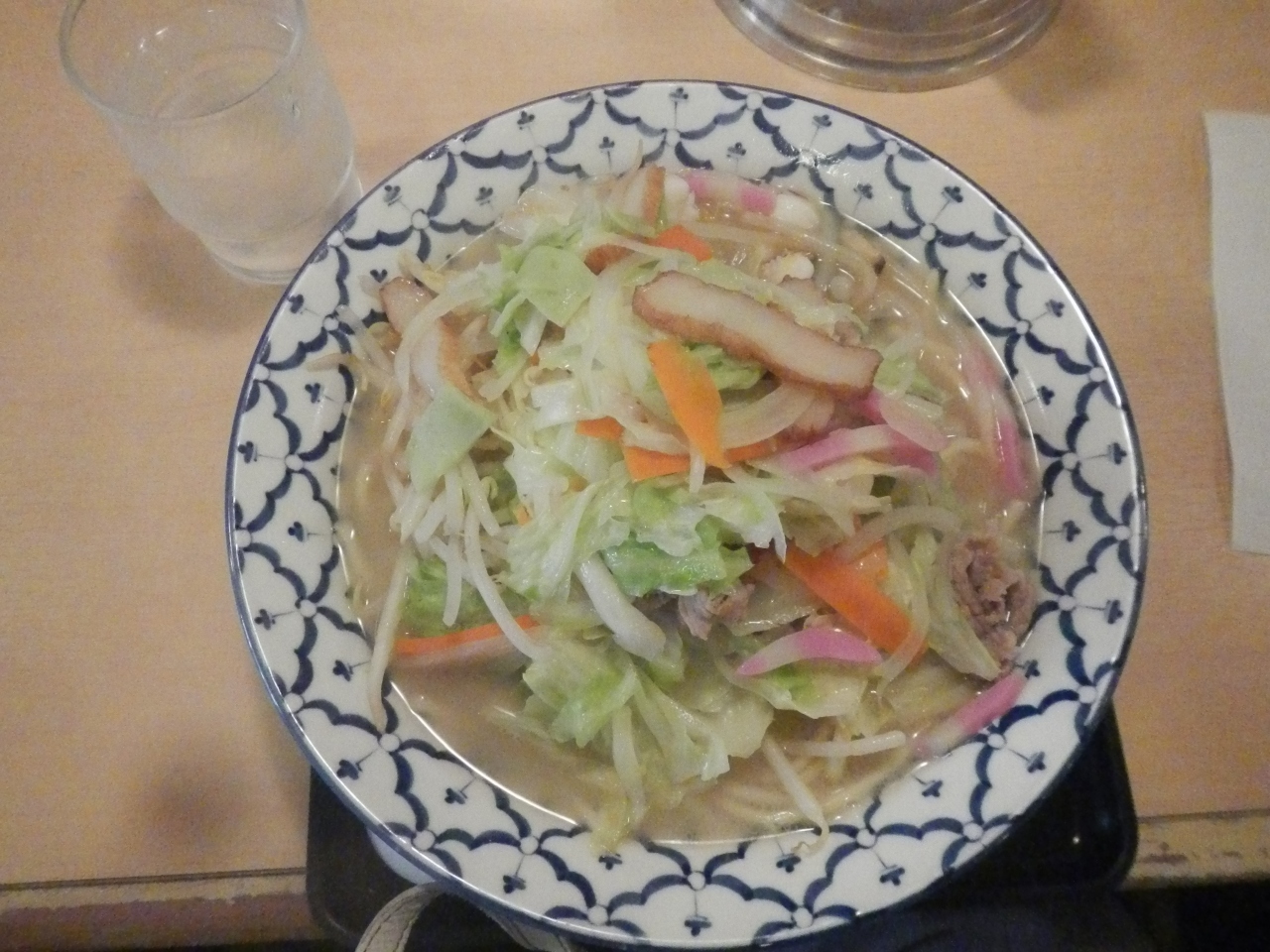 日本橋界隈で昼食を食べる。特にあてがあったわけではないが、「ちゃんぽん」の文字を見て入ってみた。表に野菜増無料の文字が見えた。