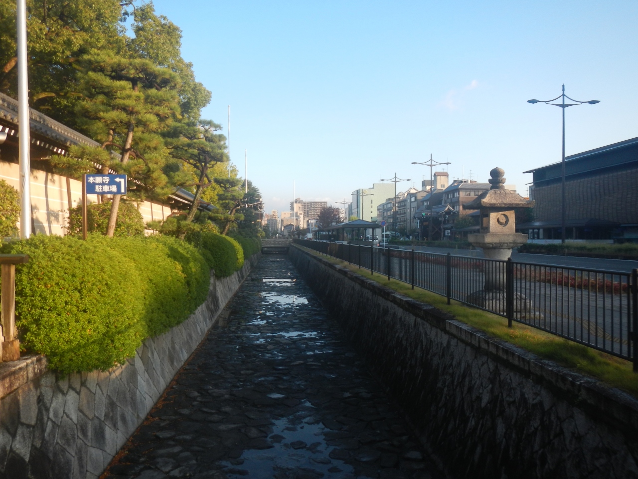 堀川通り沿いに流れている水路。西本願寺の前を流れているが、現在は水がほとんど流れていないのが残念だった。この場所からさらに北に進んだ二条城から先の4kmほどは堀川水辺環境整備事業で清流が復活しているそうだ。次回京都に来たらぜひそちらに行ってみたいものだ。