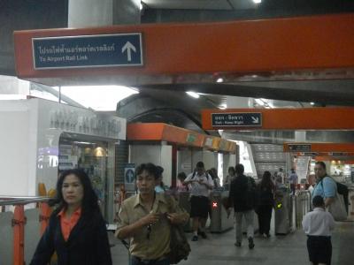 カオサン方面からパヤタイ駅に行くバスの本数が少ないので、早めに出て、チットロムまでバスに乗り、BTSでパヤタイ駅まで移動した。改札口を出ると案内の沿って歩けば迷うことなくエアポートレイルリンクの駅に着くことができた。