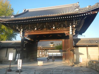 唐門を見て北小路通りから堀川通りに出て左に曲がり、御影堂門から境内に入った。この門は御影堂や阿弥陀堂に比べると小ぶりな門だ。入ってすぐに右側の大きな銀杏の木があり、それを通りすぎると正面に御影堂があった。