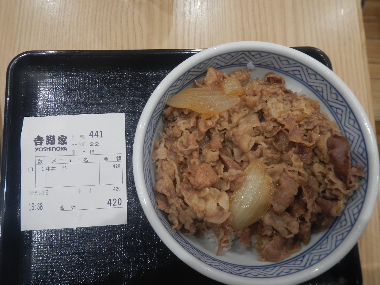 メニューを見て牛丼並が420円だった。「あれ、確か380円じゃなかったかな」と思