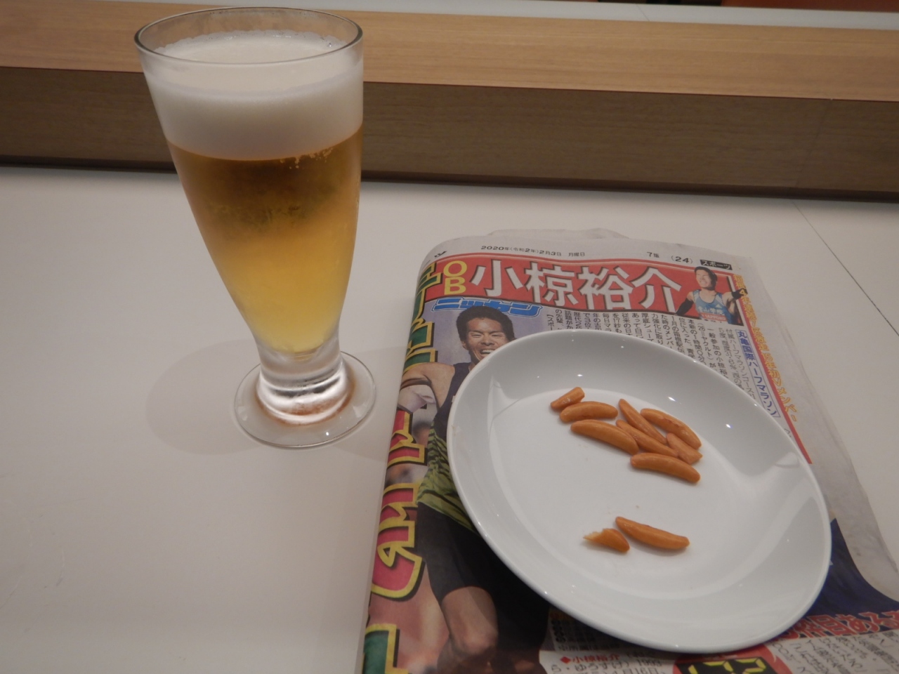 2020年の2月に利用した時の口コミだ。2年でまるで別世界のようになってしまった。この時はは新聞や雑誌が置いてあったが、今はない。ビールは緊急事態宣言下では飲めなかったが、この時はまだ宣言が出ていないので飲めた。お菓子も個別包装のものではなく、「あられ」だった。窓から見る景色だけは変わっていないようだ。