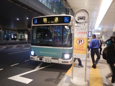 JAL便で那覇から第一ターミナルへ到着した。国際線ターミナルからJALのバンコク便に乗り継ぐために乗車した。ターミナル間の移動は京急線やモノレールでも移動できるが、名前の通りこのバスが無料で移動できるので使わずにはいられない。