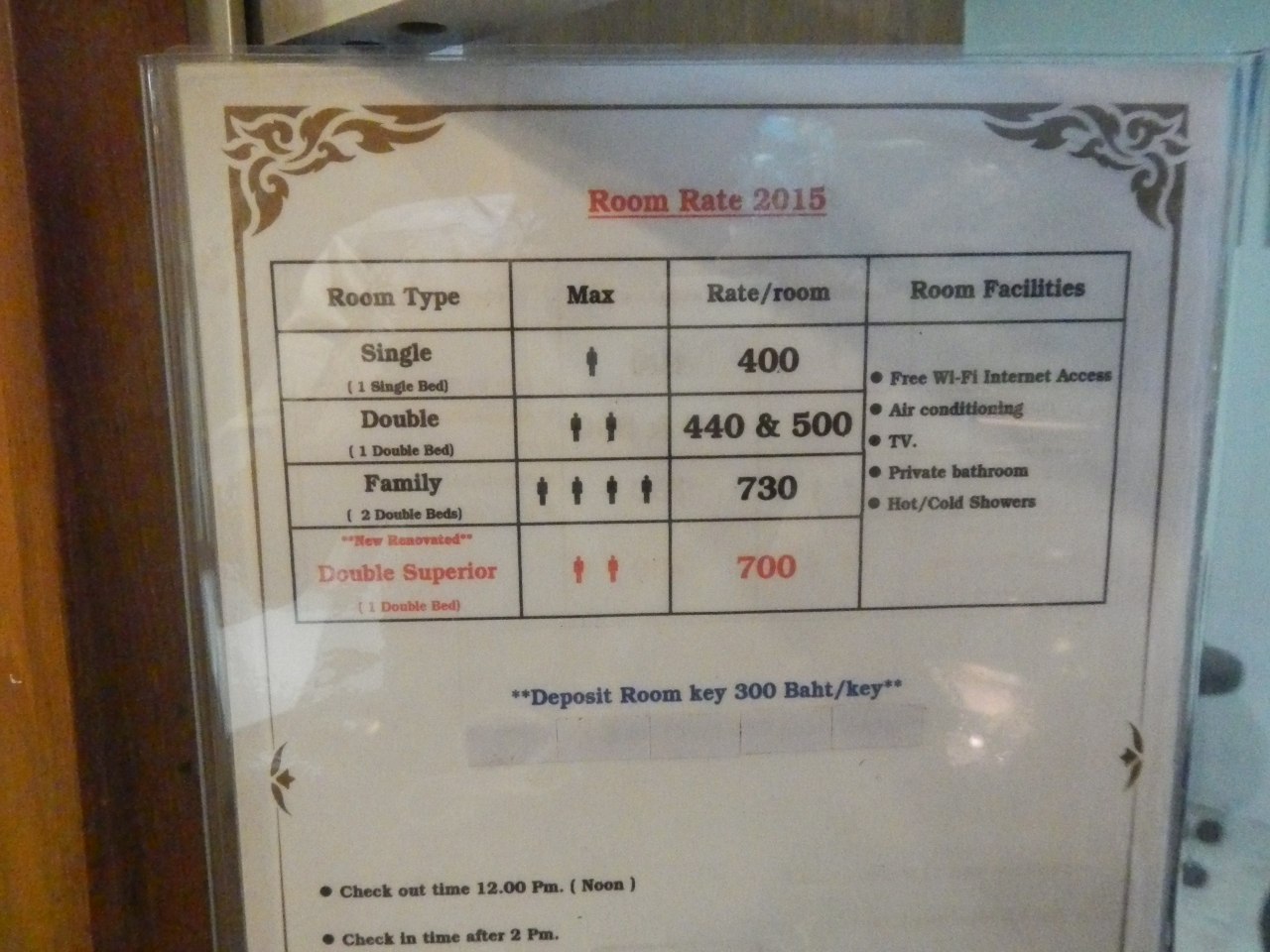 カオサンロード近くのチャクラポン通りにあるゲストハウス。予約サイトを通して1494円で予約する。部屋はエアコン付のダブルルーム。WIFIがまともに使えなくて苦労した。部屋にはテーブルも洋服入れもない。安いが設備は貧弱だ。