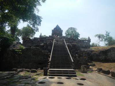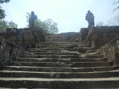 プレア・ヴィヘア遺跡の麓まではチャーターしたワゴン車で行けるが、遺跡に行くには急坂を登らなくてはならないので、5$払ってピックアップトラックに乗り換える。振り落とされる気がするくらいの急坂を一気に登ると遺跡に着く。