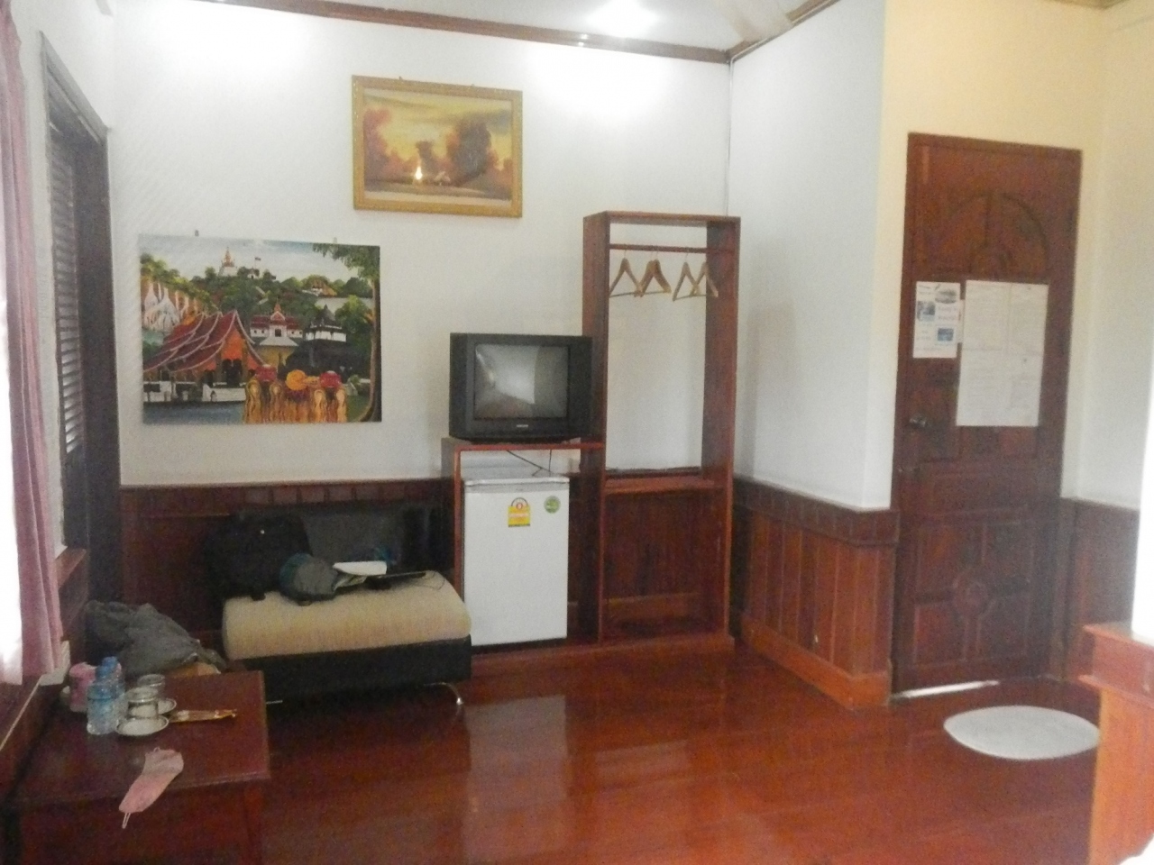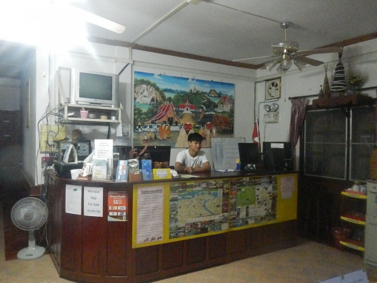 ウドムサイは小さな街なのでバスターミナルから街中まで徒歩で行けるのがいい。このゲストハウスもバスターミナルから徒歩10分ほどだ。泊まった部屋はファンのみのシングルで7万K。1階のロビーは