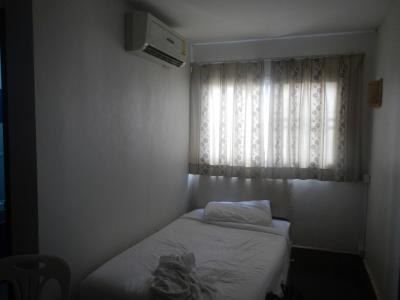 前回と同じくエアコン付のシングルの泊まった。料金は変わらず340バーツ。しかし、今回の部屋はルームナンバーは413Bで前回よりも広かった。このゲストハウスの並びには深夜でもビールを売っている店があるのでビール好きには便利だ。
