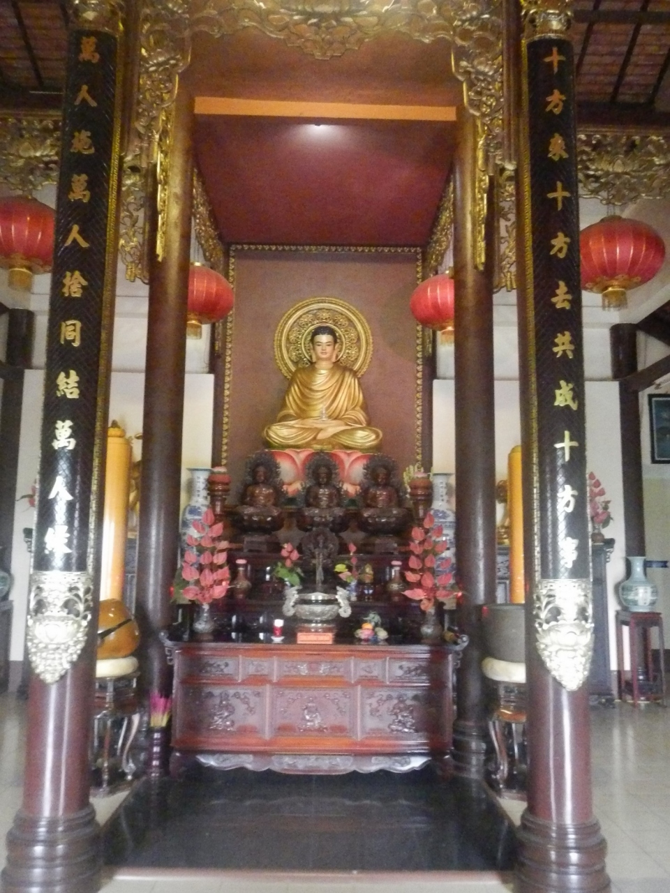 本殿の柱には漢字で書かれた文字があるが、ベトナムの人は意味が分かるのだろうかと思ってしまう。- 旅行時期