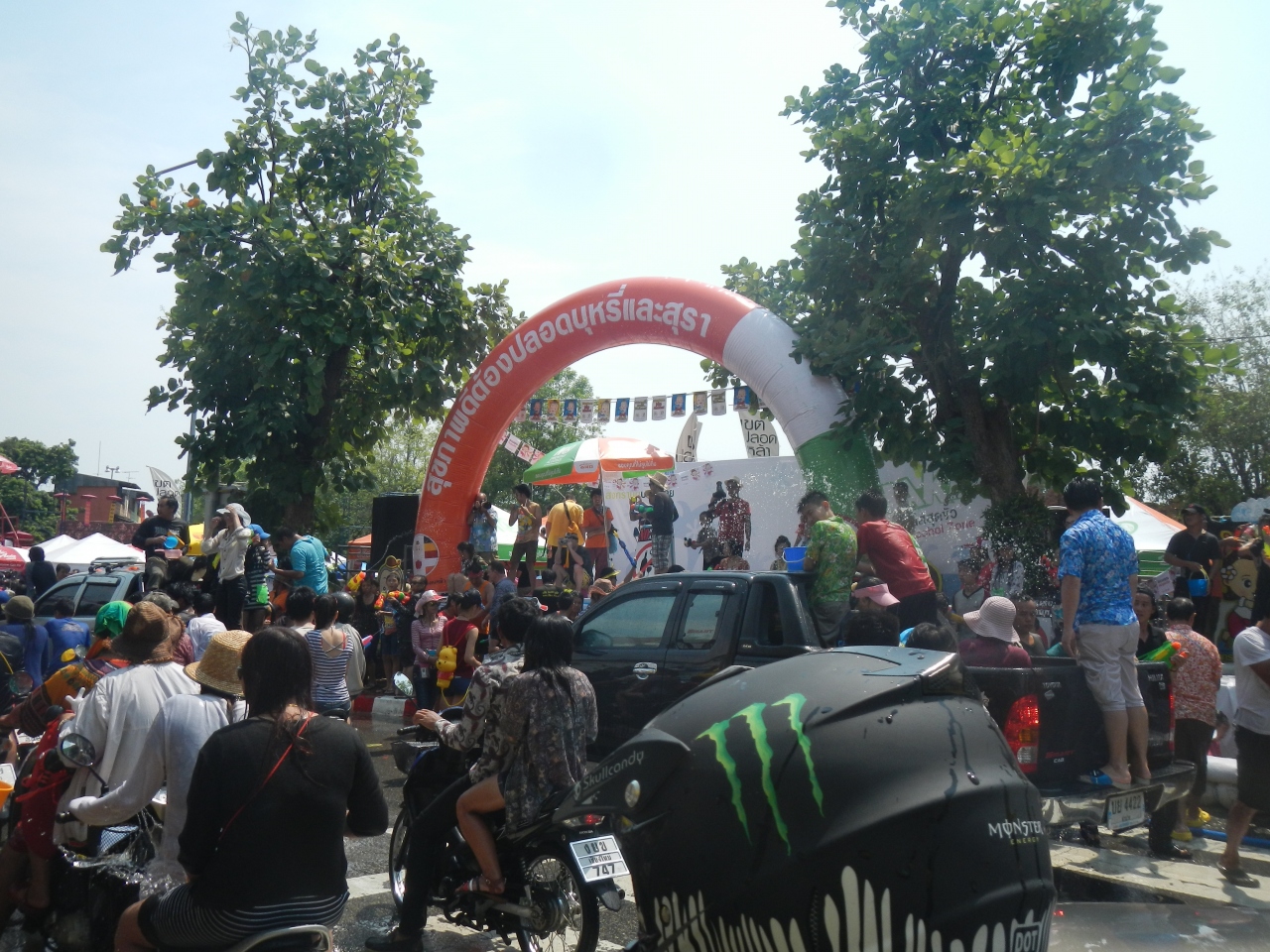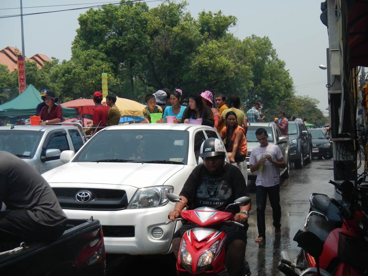 ソンクラーンはタイで全国的に行われる。その中でもチェンマイのソンクラーンは規模が大きい。バンコクだと水鉄砲で水を掛け合う程度だが、チェンマイでは車から水を撒く。道路が渋滞してもお構いなしだ。堀沿いのところでは堀から水をくみ上げて撒くから、水がなくなることがない。個人的にはソンクラーンに積極的に参加するつもりはないので、祭りが終わるまで街歩きをしずらかった。