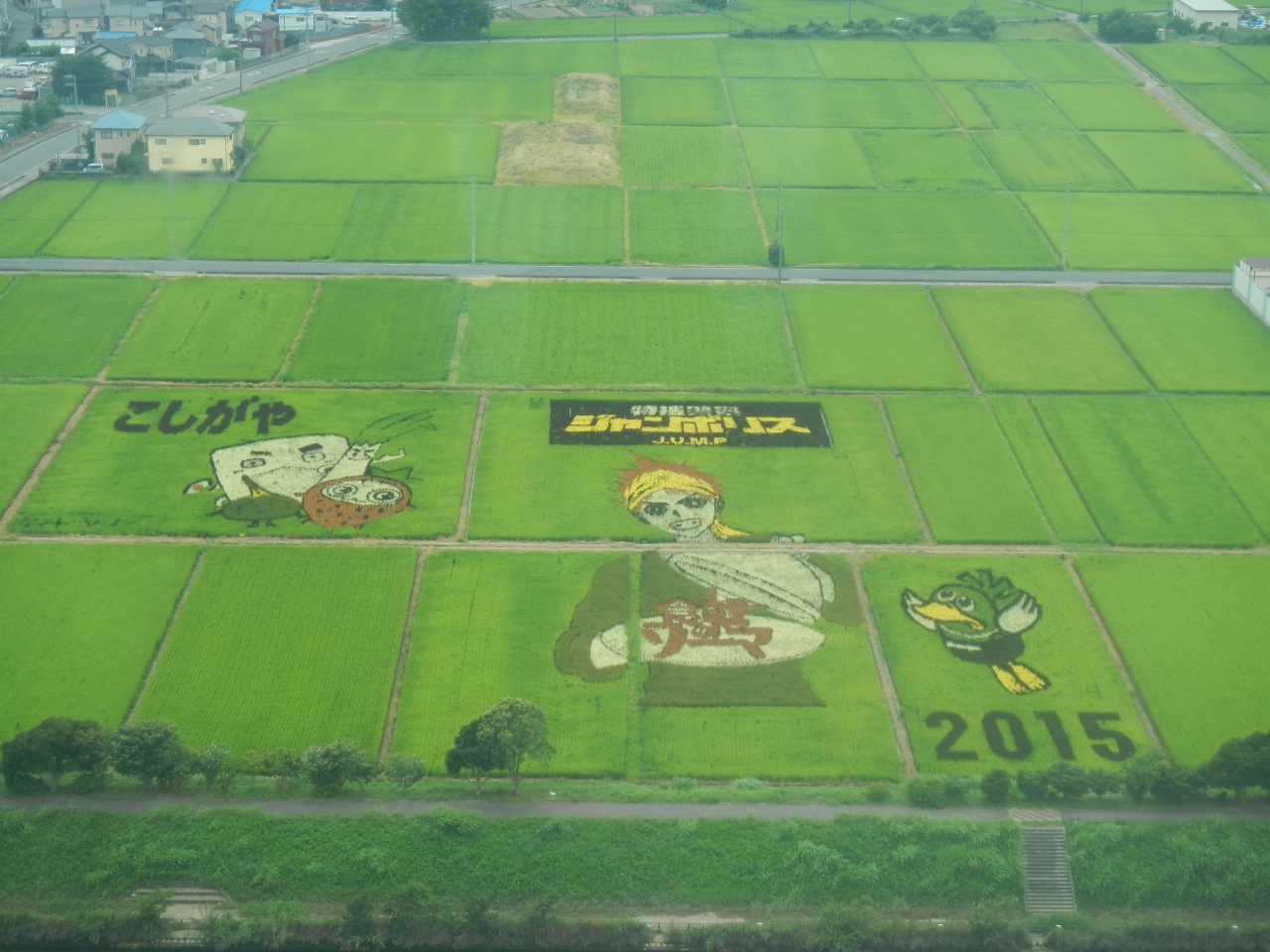 今年は「食戟のソーマ」が描かれているとのことだが、その漫画を全然知らない。田んぼアートというと青森県の田舎館村が有名だが、まだまだ越谷の田んぼアートはその足元にも及ばない。- 旅行時期