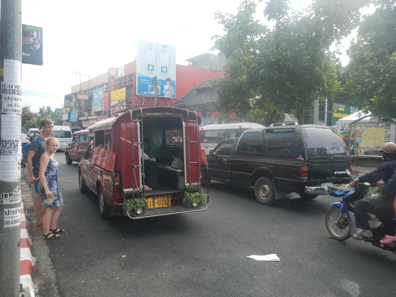 チャンマイアーケードバスターミナルからタペー門まで乗車。乗車前に料金を確認すると30バーツだった。以前は20バーツで乗った記憶があるので、降車時に20バーツを渡すと特に何もいわずに受け取る。やはり20バーツが相場だということを実感した。