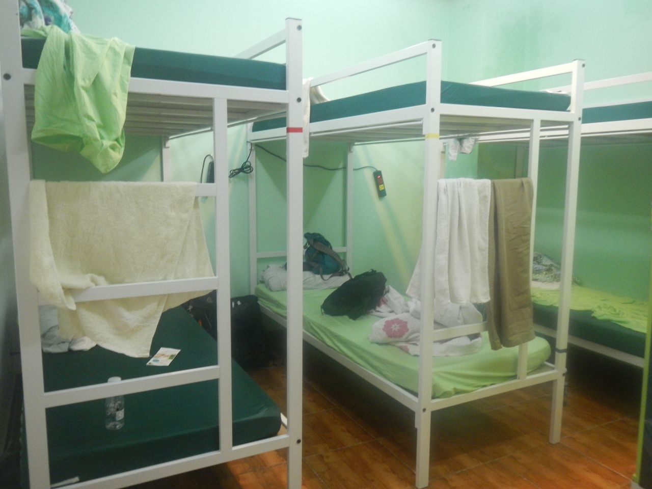 料金ドミ6$。朝食付き。部屋は5階、階段は急だ。ベッドの幅がやや狭い。6人部屋。枕灯なし。タオル付。午前7時にチェックインできたのはよかった。1階ではハンバーガー屋になっている。