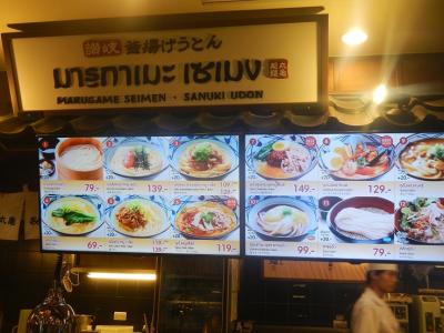 日本でも自宅近くに支店があるので時々利用している。プロンポンの近くまで行く用があったので寄ってみた。味や店の雰囲気は日本と変わらない。ネギや揚げ玉が無料なのも同じだ。ただ暖かいお茶は無料であるのに、冷水が無料ではない。値段も釜揚げうどんの並が79バーツ。日本なら280円だ。