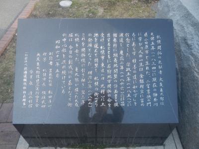 時計台から大通り公園付近を歩いていると、「豊平館跡」の碑に出会ったので写真を撮り、説明版を読む。建物は中島公園に移築・保存されていることを知る。この日は中島公園の近くに泊まる予定なので明日の朝行ってみようという気になった。